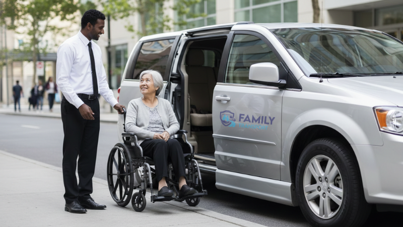 Family Transport drivers are professionally trained in wheelchair assistance and passenger safety. They provide door-to-door support, assist with boarding and exiting, properly secure wheelchairs, and ensure passengers are comfortable before departure. Drivers allow adequate time for each step of the process, creating a calm and respectful experience.